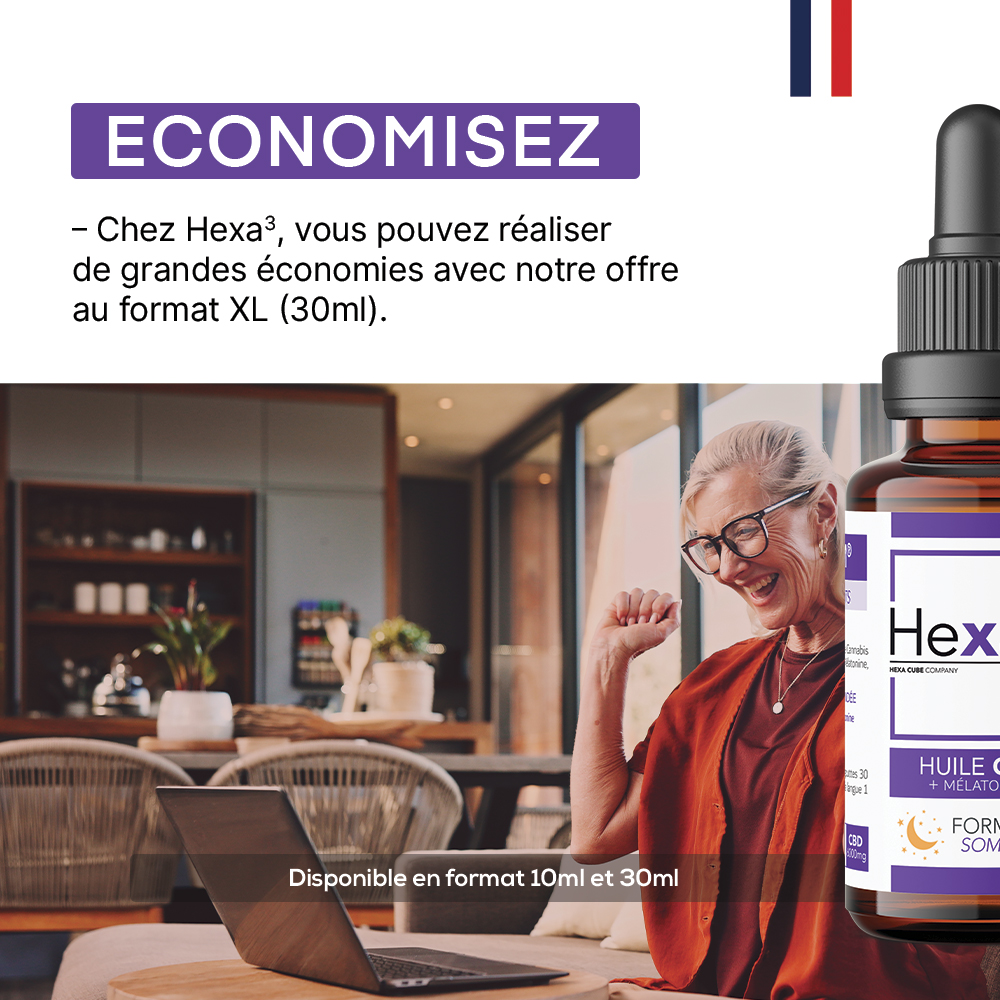 Huile CBD + Mélatonine 2000mg Sommeil 40 nuits Fraise 10ml HexaSOM®